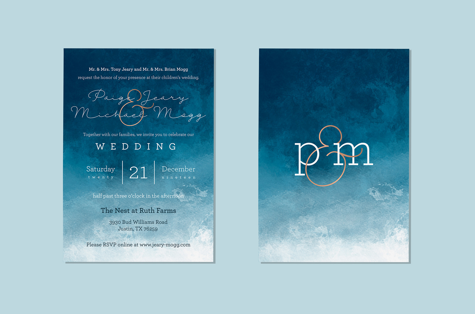 I had the honor of designing my sister and her fiancé's wedding invitations. Their main wedding color is slate blue, and they wanted a soft watercolor background, which I created in Procreate.