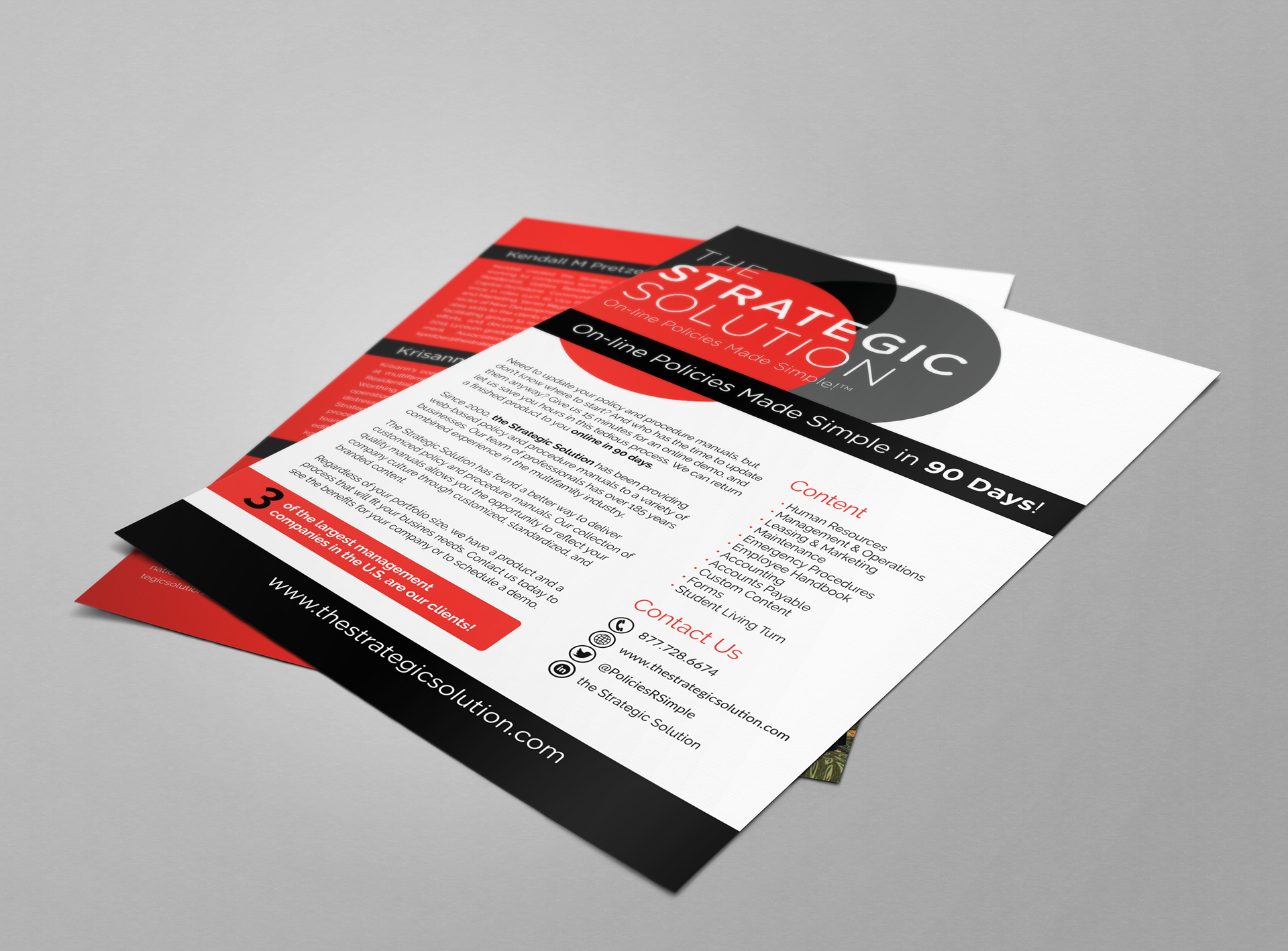 The Strategic Solution provides web-based policy and procedure manuals to a variety of businesses. They wanted to update their logo, which led to updating a variety of their promotional materials.