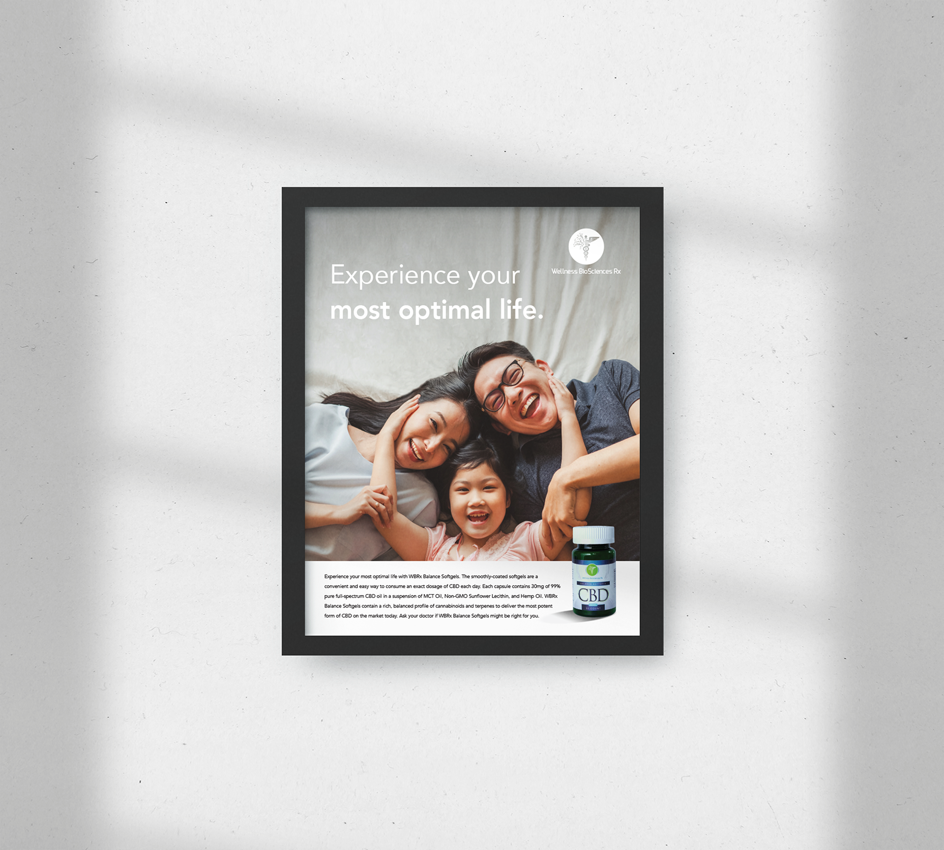 Wellness BioSciences Rx sells scientifically-advanced CBD-based wellness products. These are print advertisements doctors can use on their office walls to help spark conversation about CBD and its health benefits.